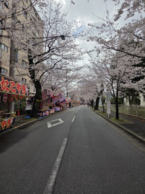 道の両サイドに桜並木があり11時から歩行者天国になり屋台も、沢山出てました😊